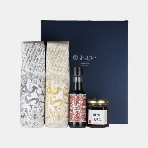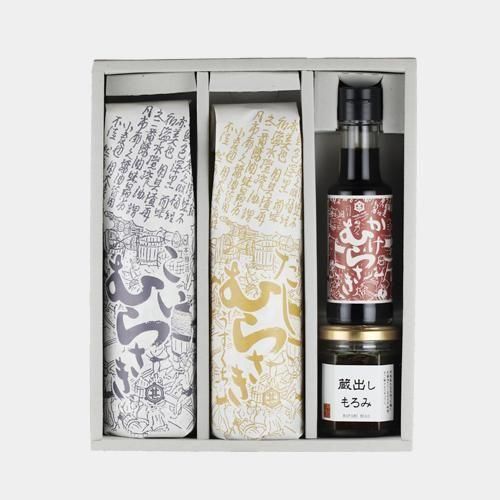 定番醤油の「むらさきシリーズ」3本に、もろみ味噌の「蔵出しもろみ」が入ったセット。